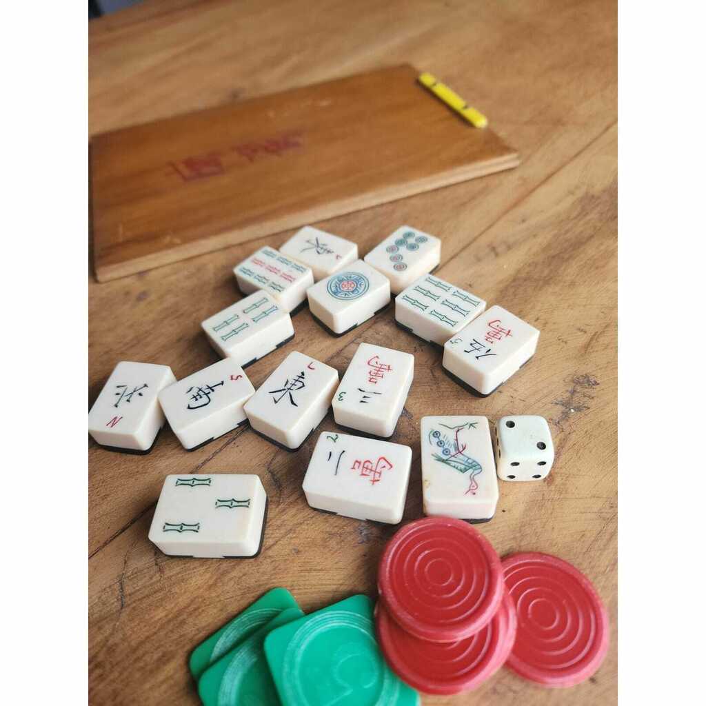Uma delicada caixa em madeira com 140 peças em marfim, 01 dado, além de peças em plástico, compõem esse jogo de origem chinesa, que é uma verdadeira relíquia de colecionador.